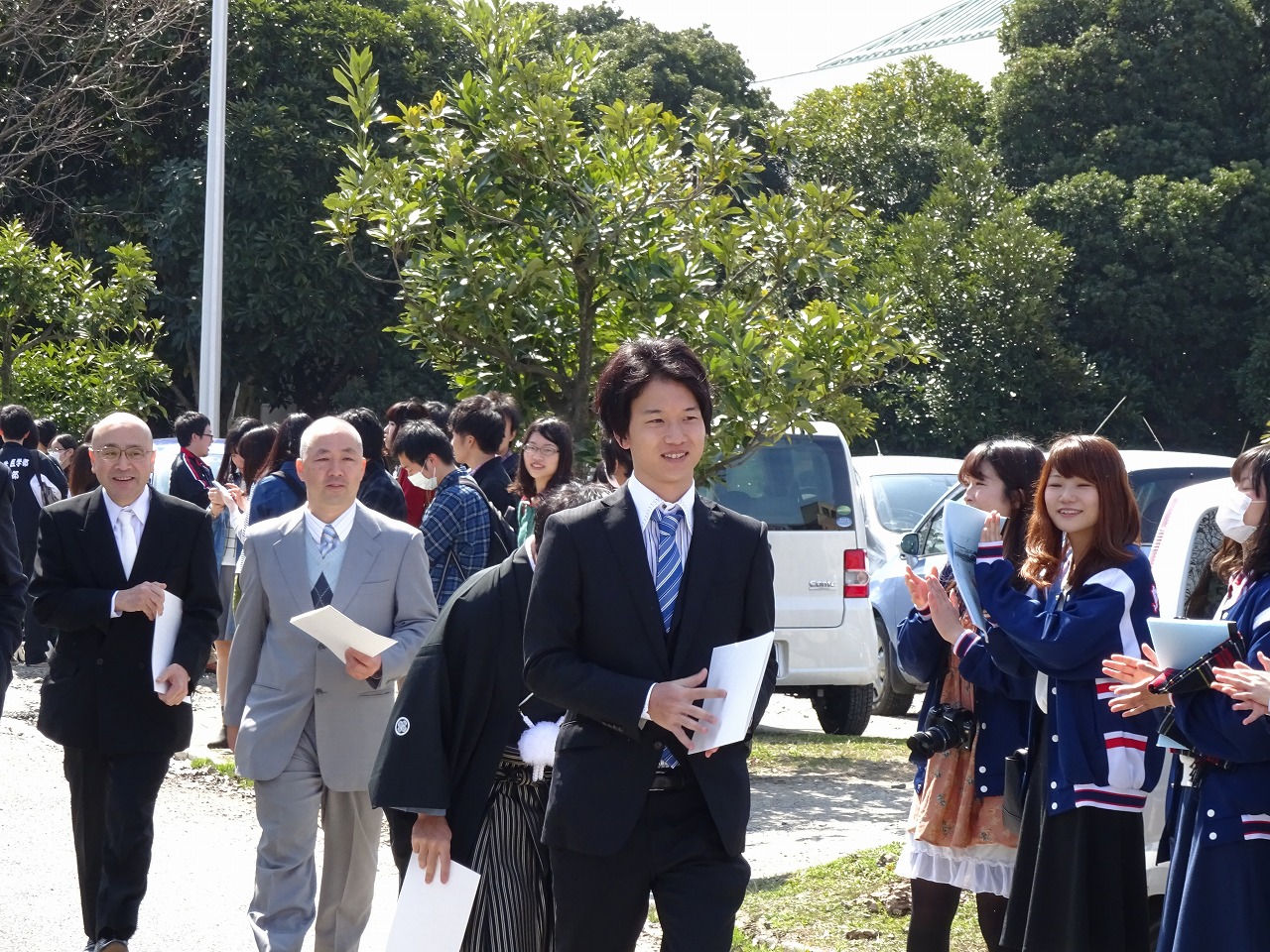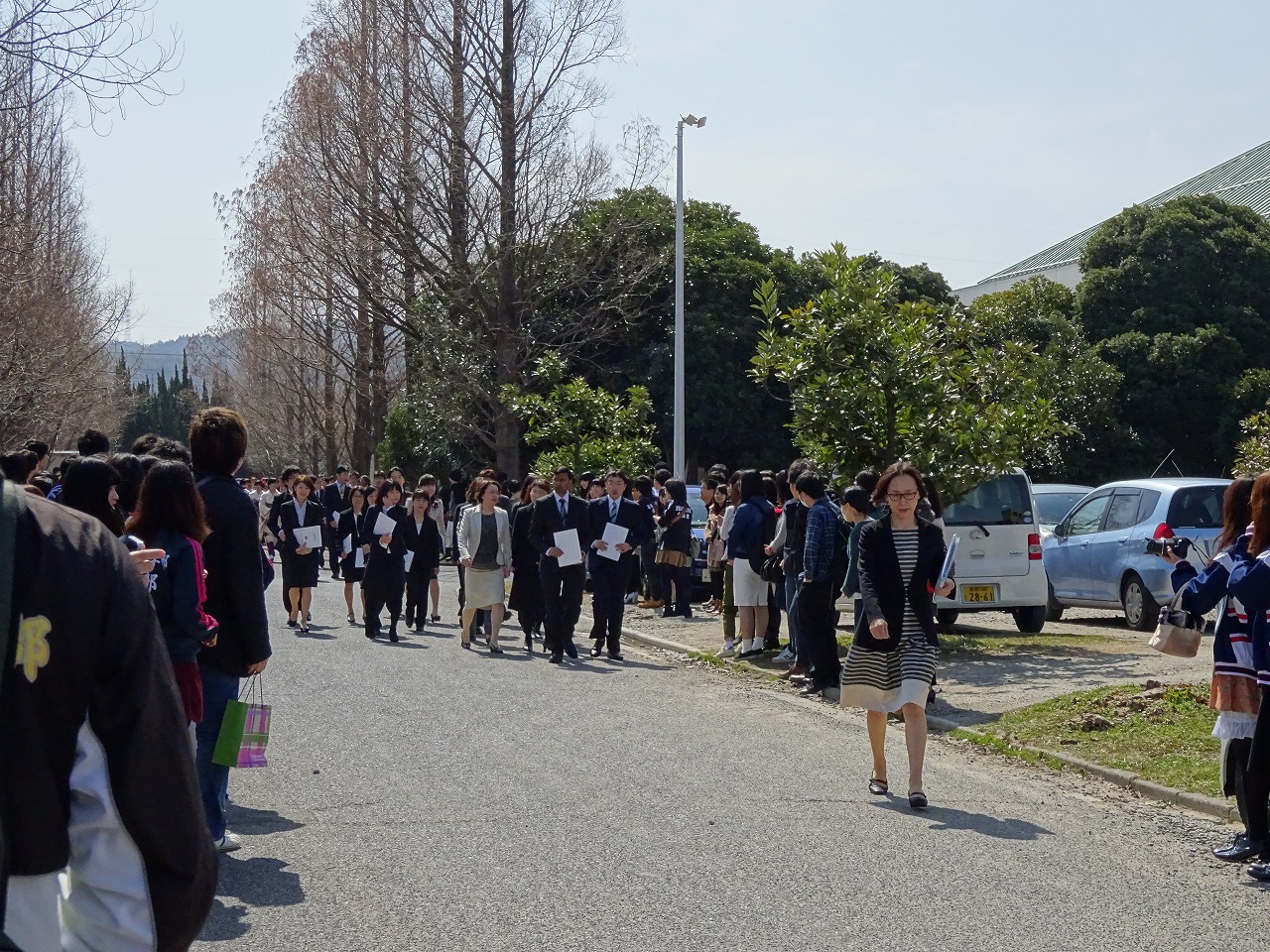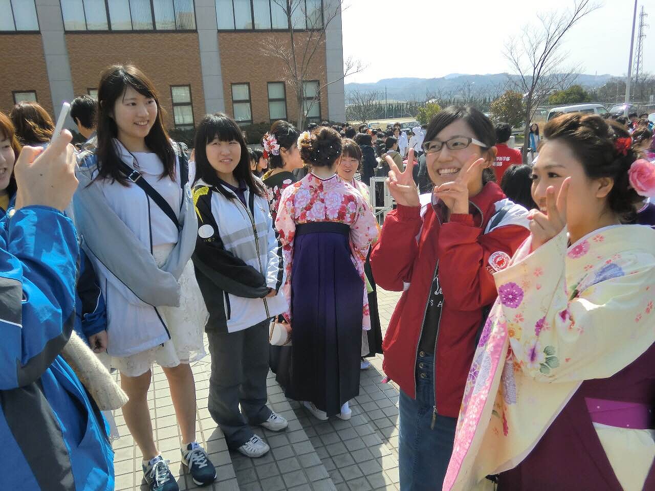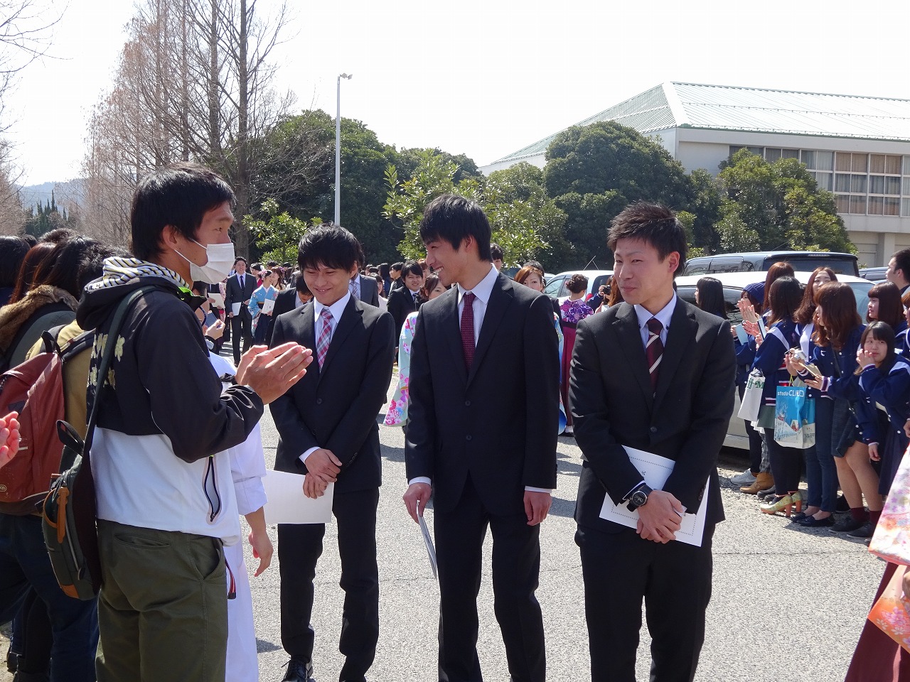 まずは、体育館から出てこられる卒業生さんを待ち構えます