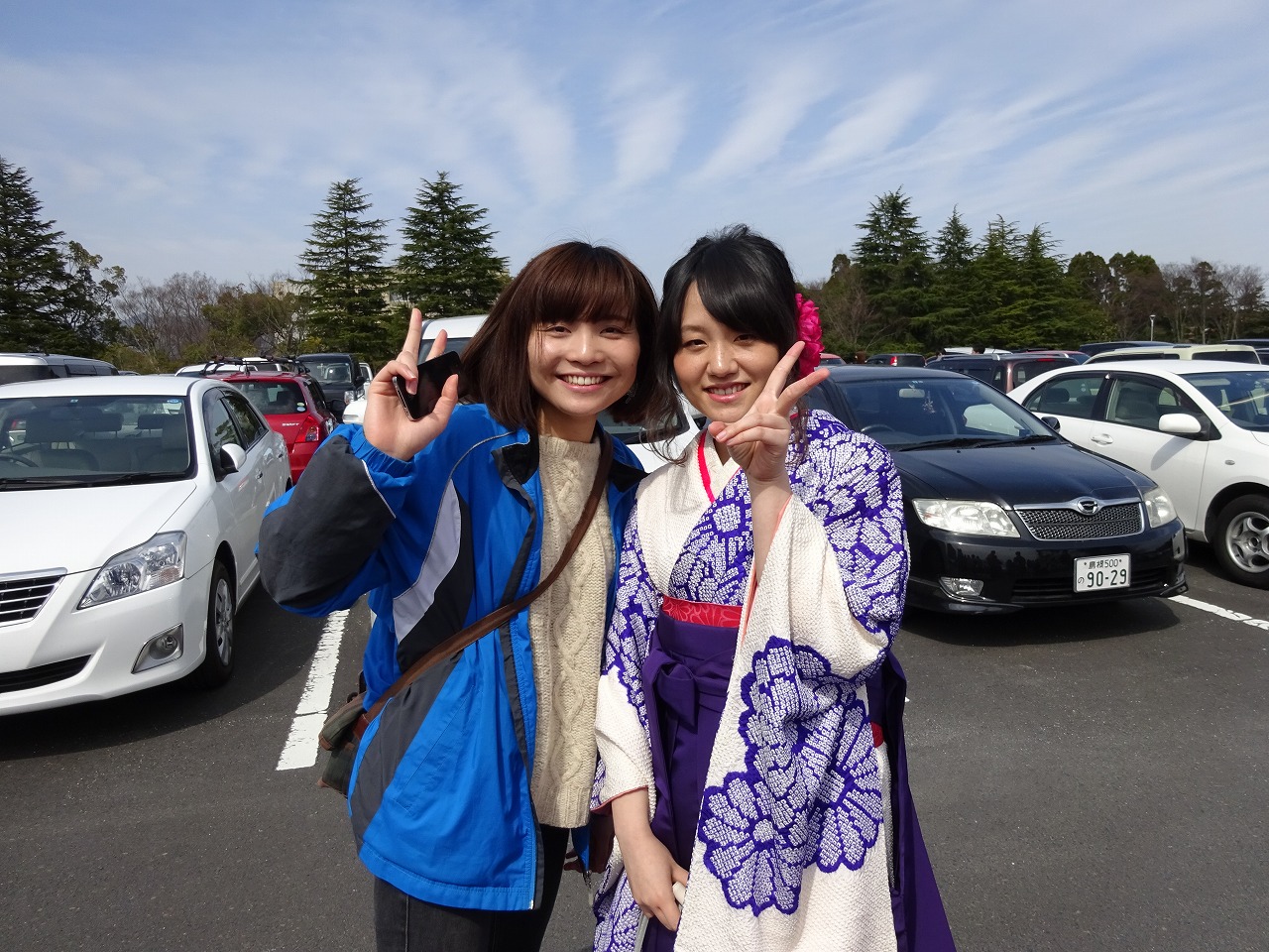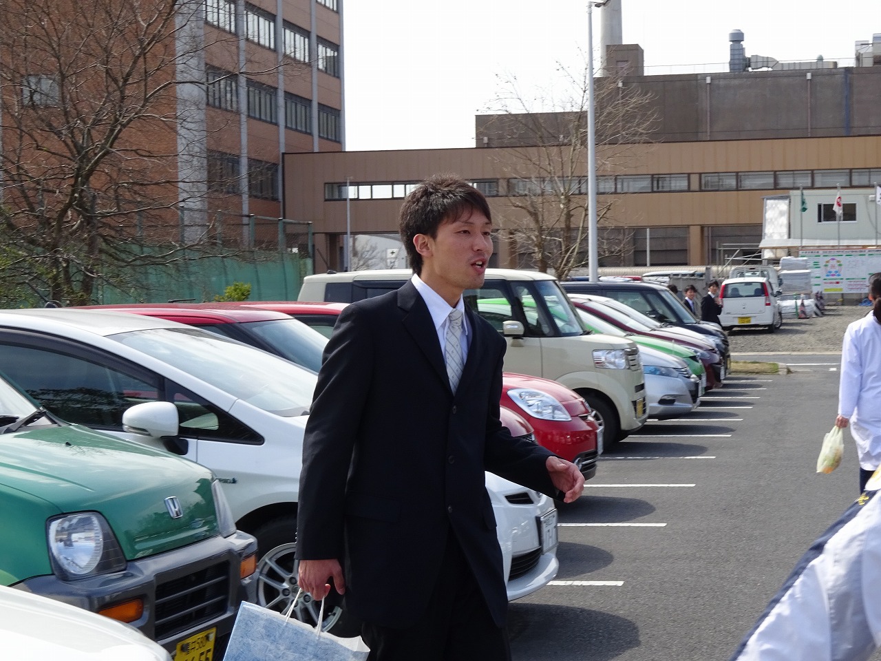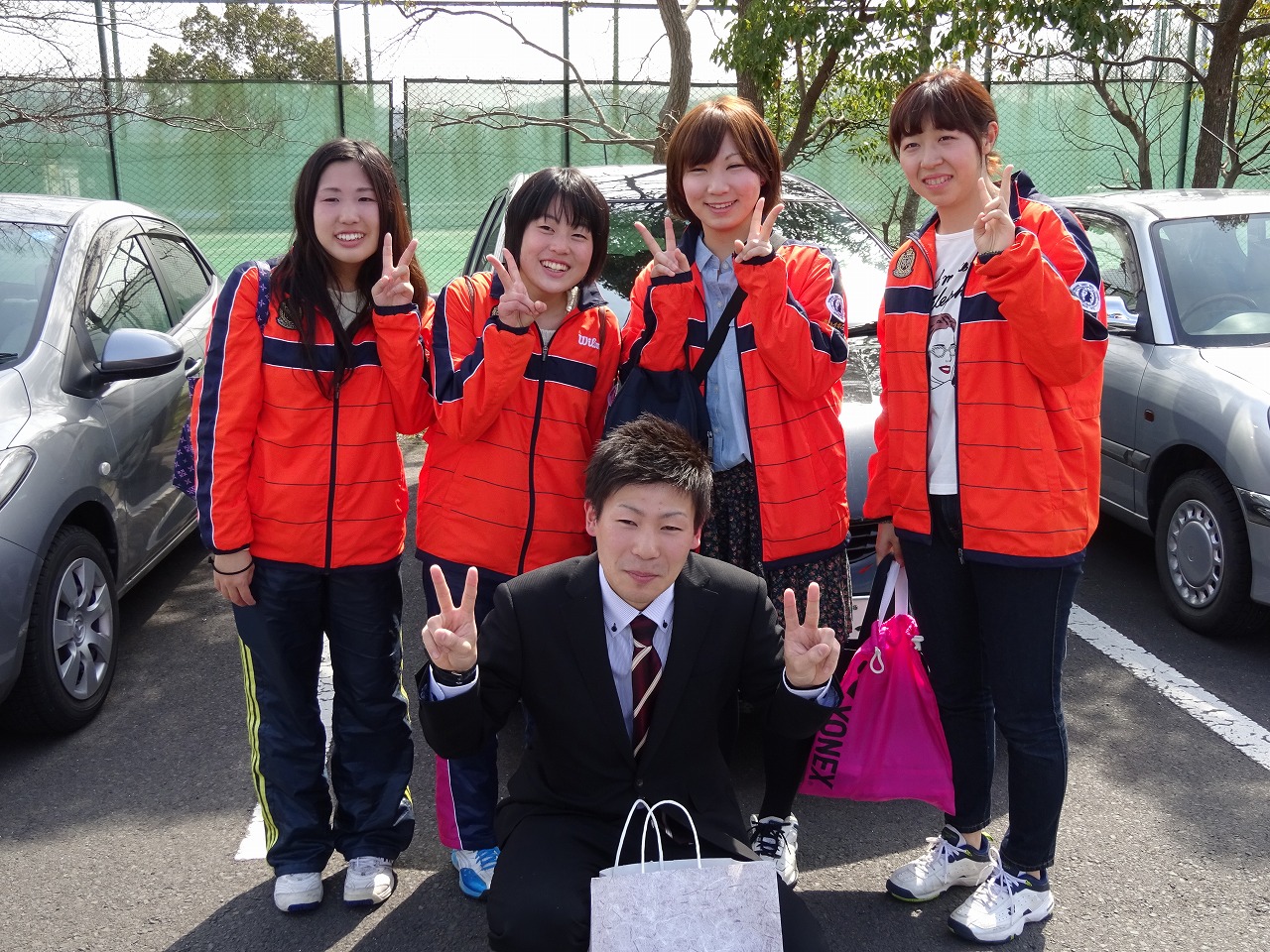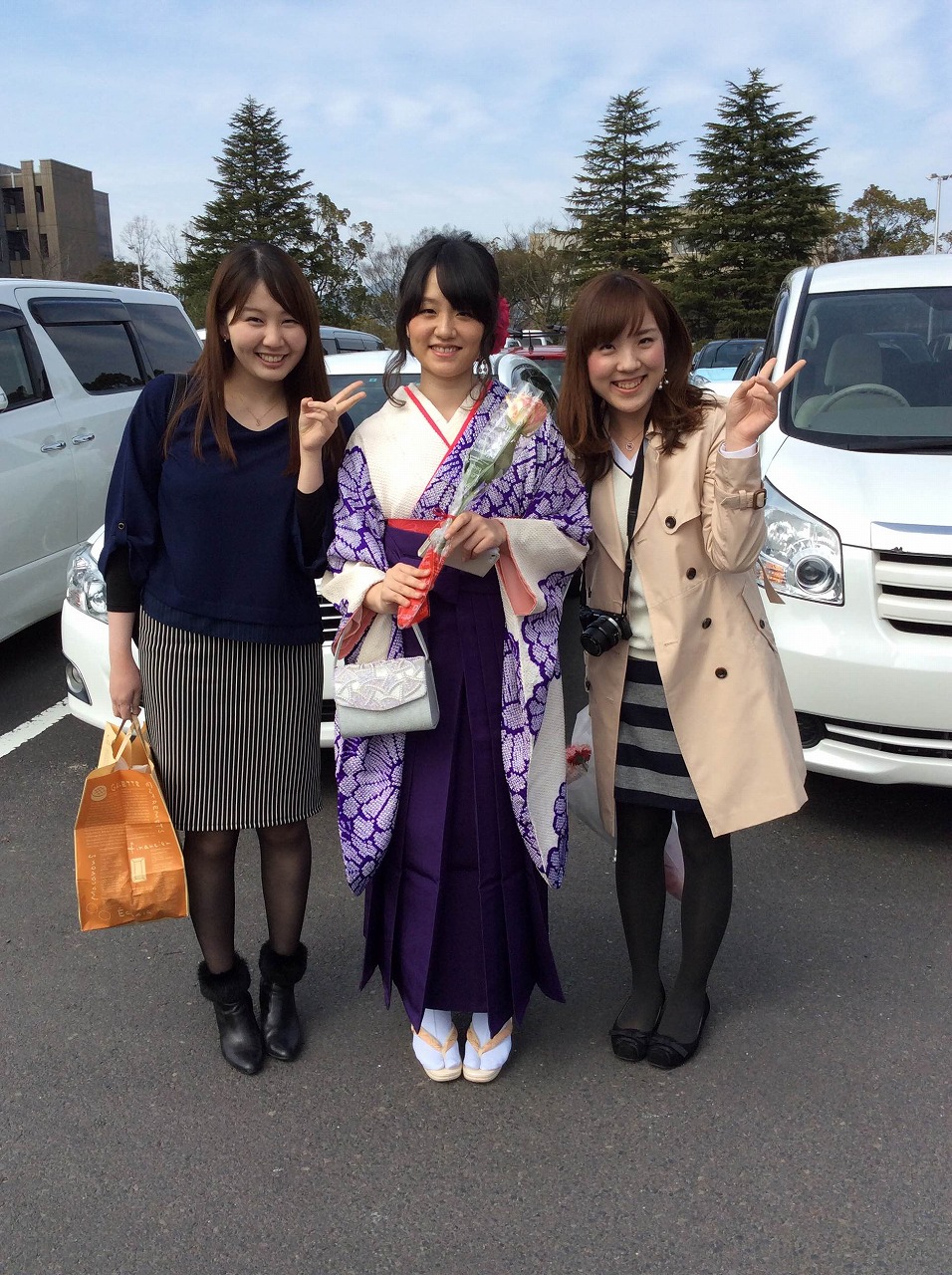 まずは、体育館から出てこられる卒業生さんを待ち構えます