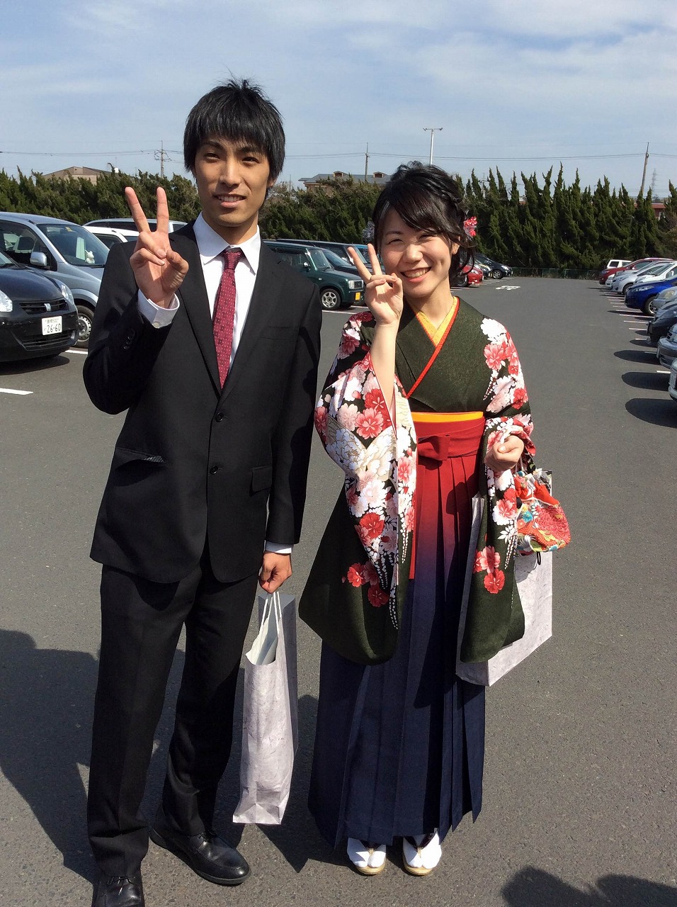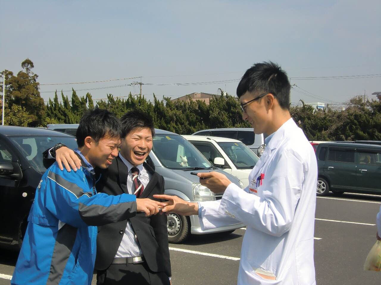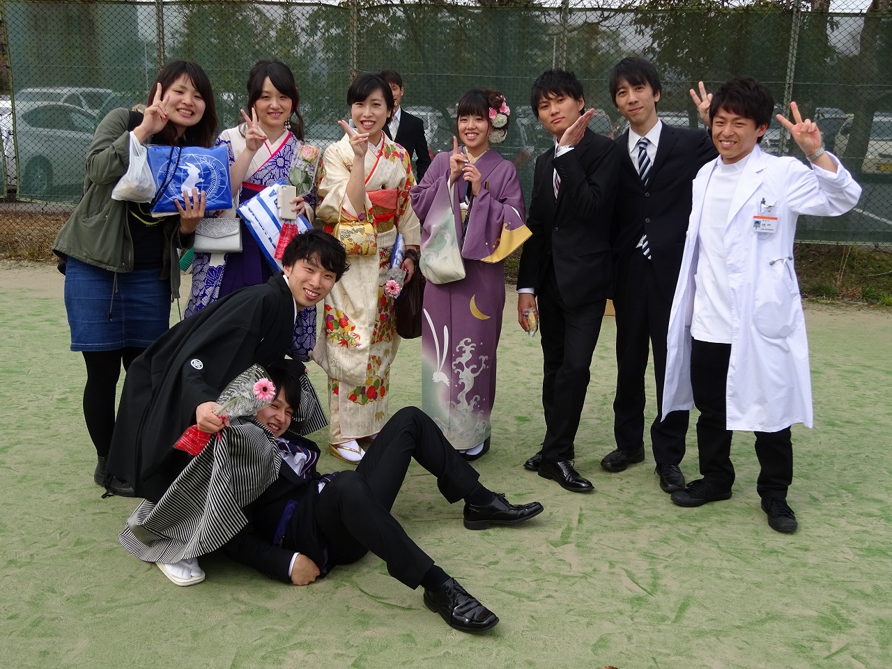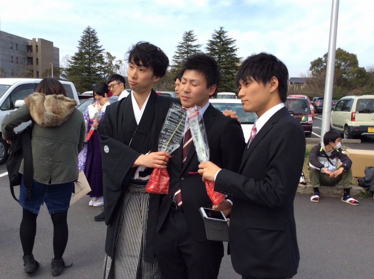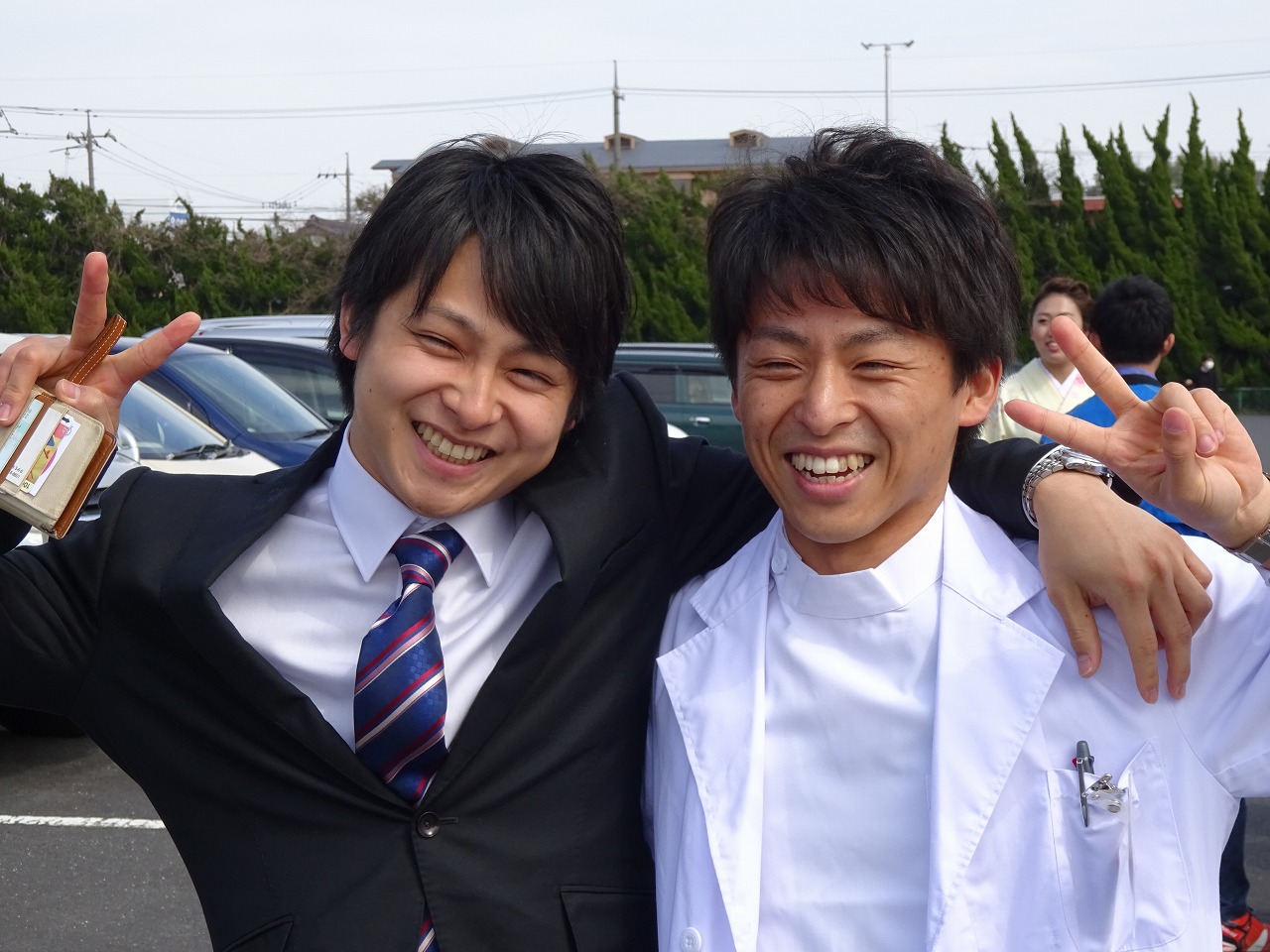 卒業生と同期の肩組みシリーズ