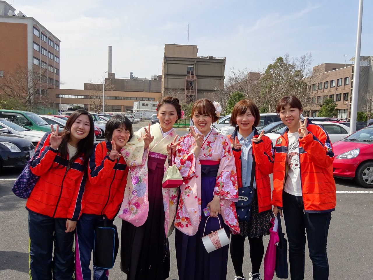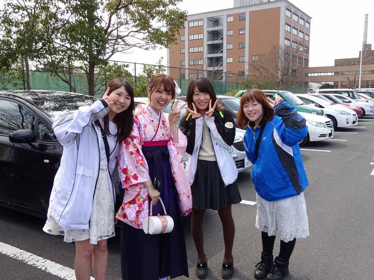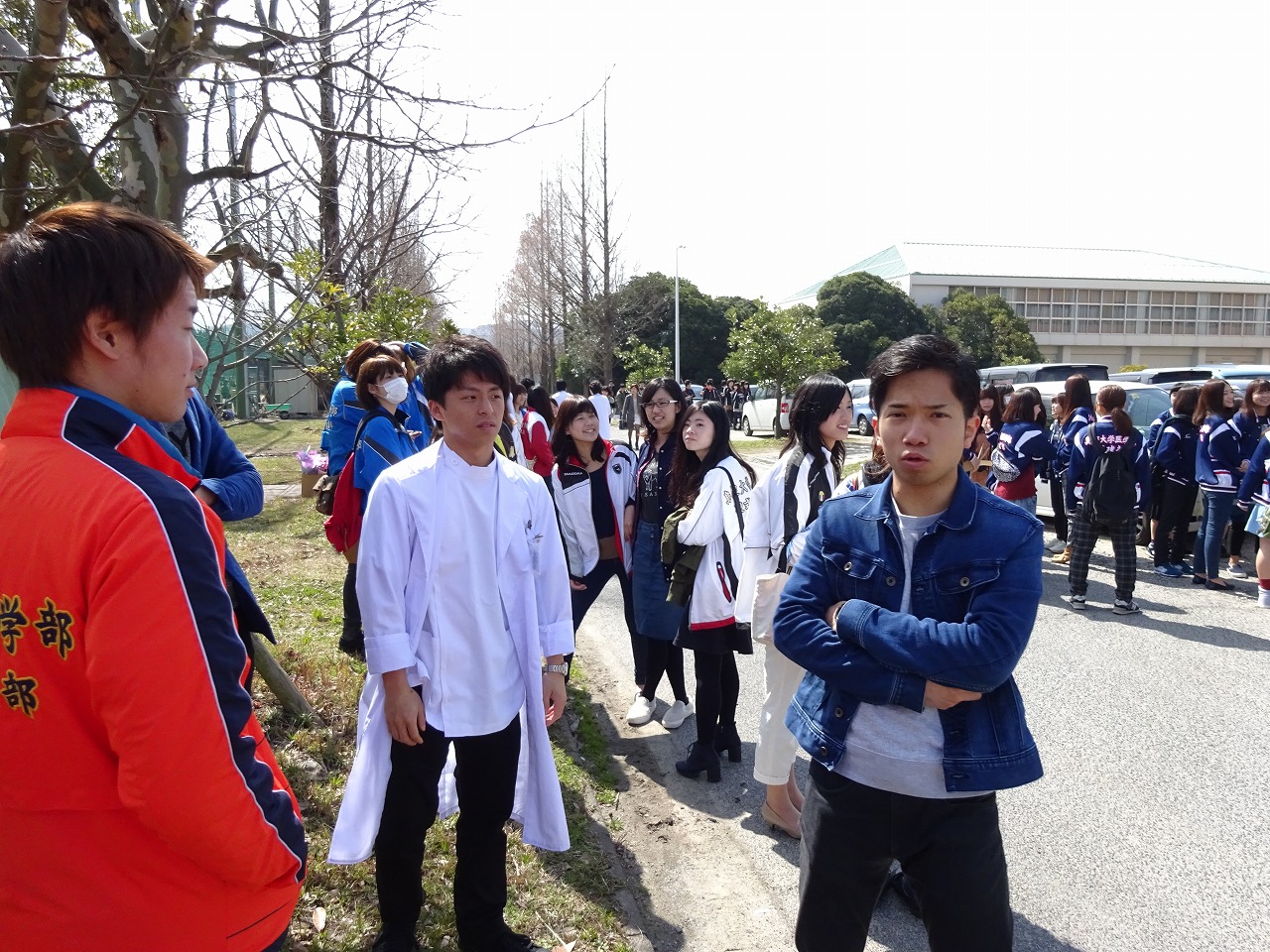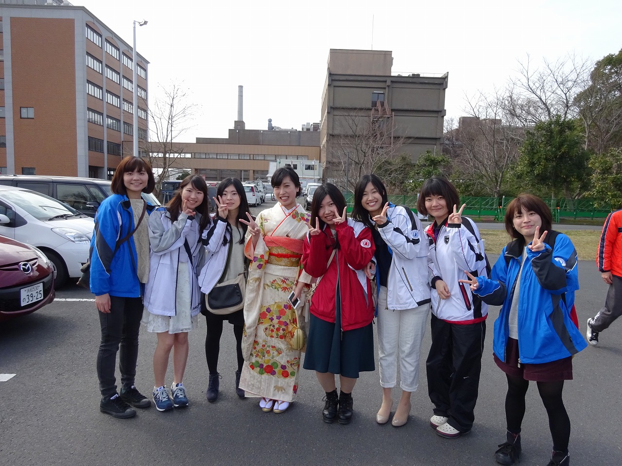 今年は講義棟が改修工事中のため、看護学科棟前で集合写真撮影でした