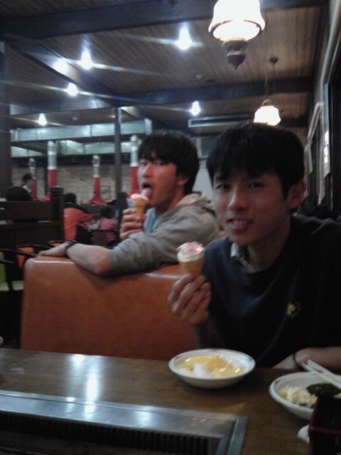 (恒例のすすめヴァイキングにて、締めのアイスクリームに入る同期男子たち 気づけばコートでの写真を殆ど撮ってませんでしたサーセン!)