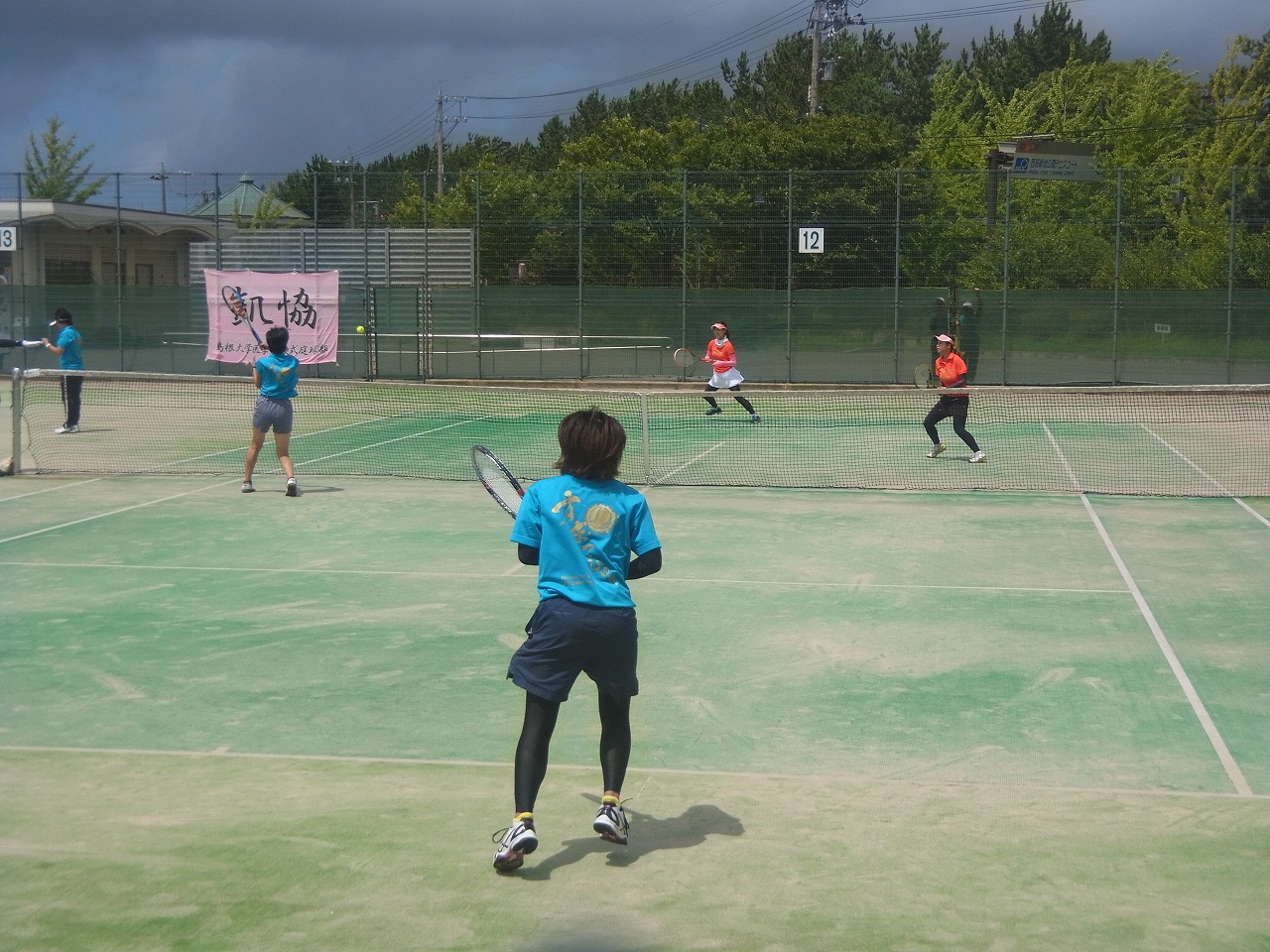 愛媛大学戦、途中だったダブルスを2本とも取った頃にはだかおさんのシングルスも終わり、今年も初戦突破です