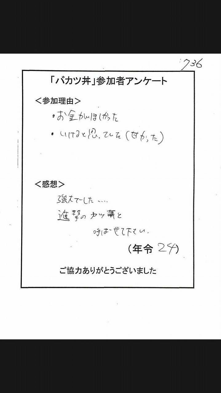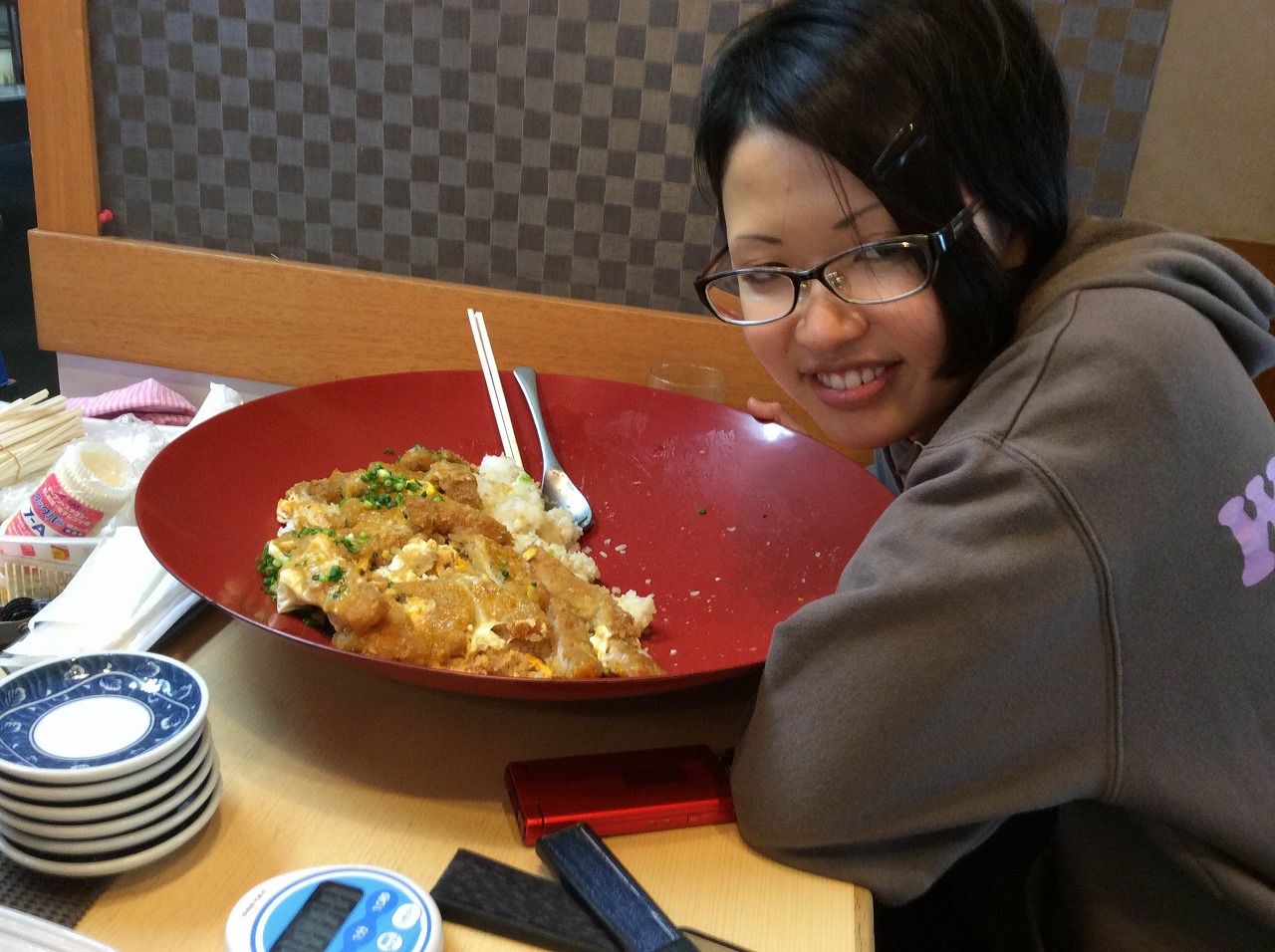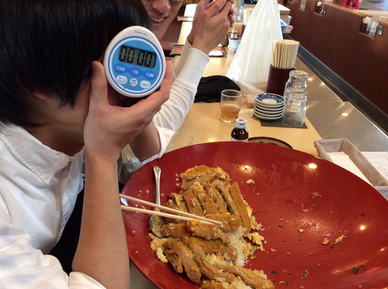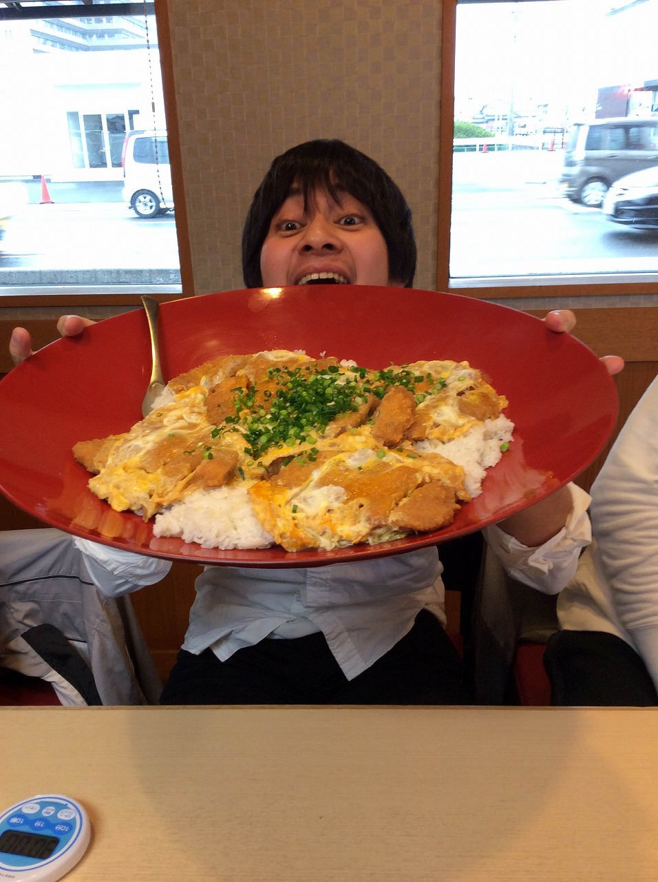 簡単に言えば、30分以内に5人前の大きさのカツ丼を完食できれば1万円もらえるってやつです