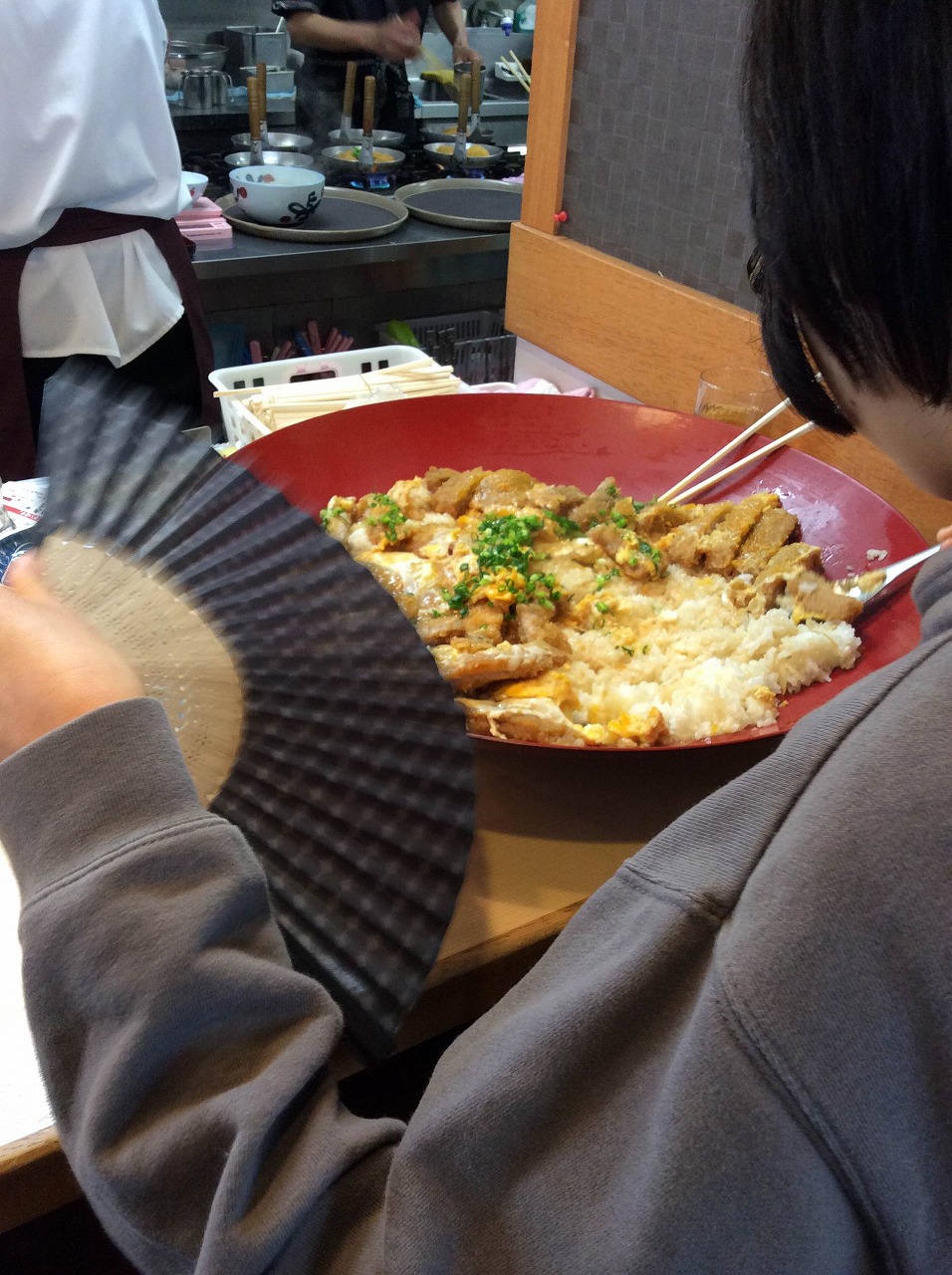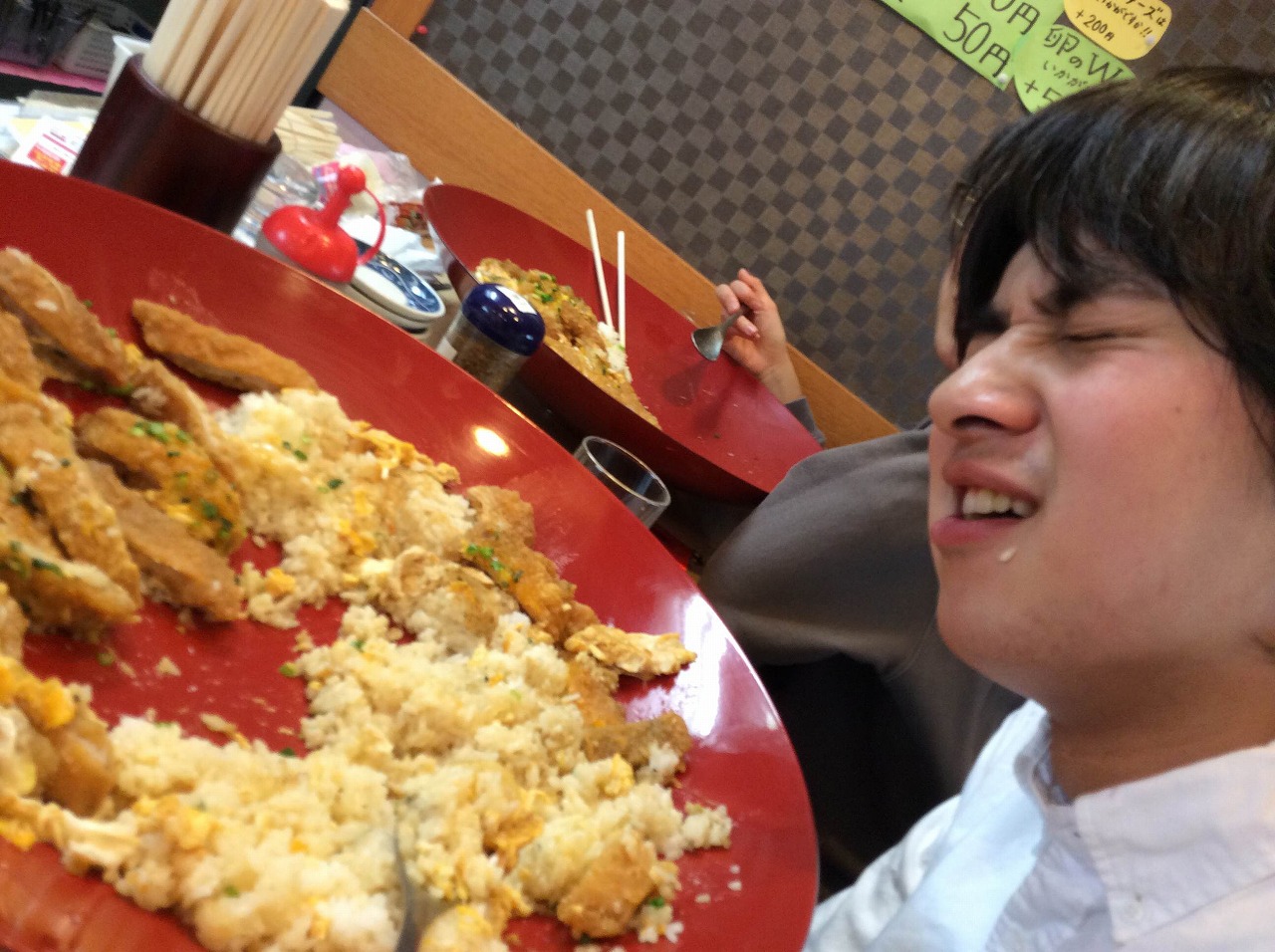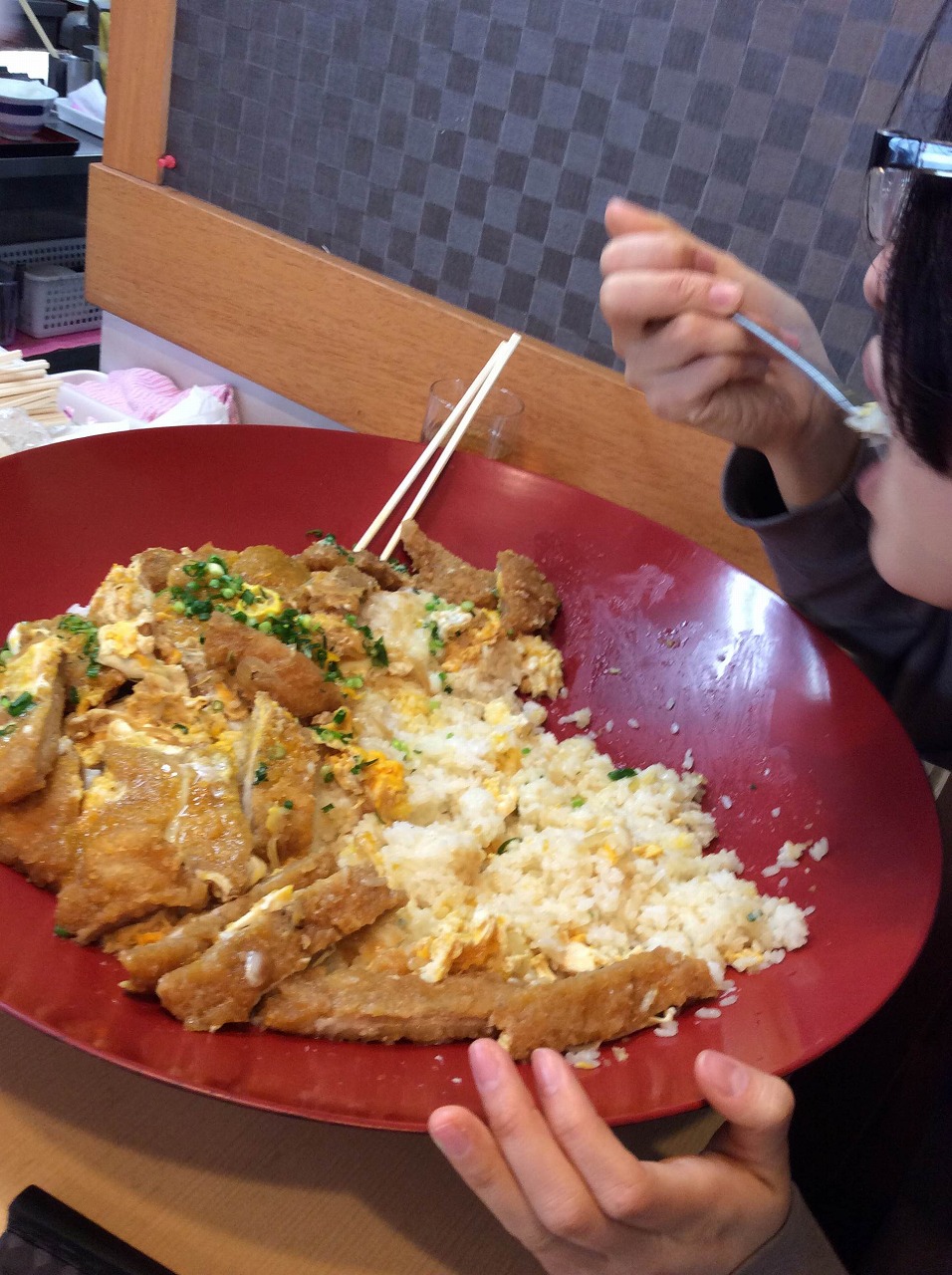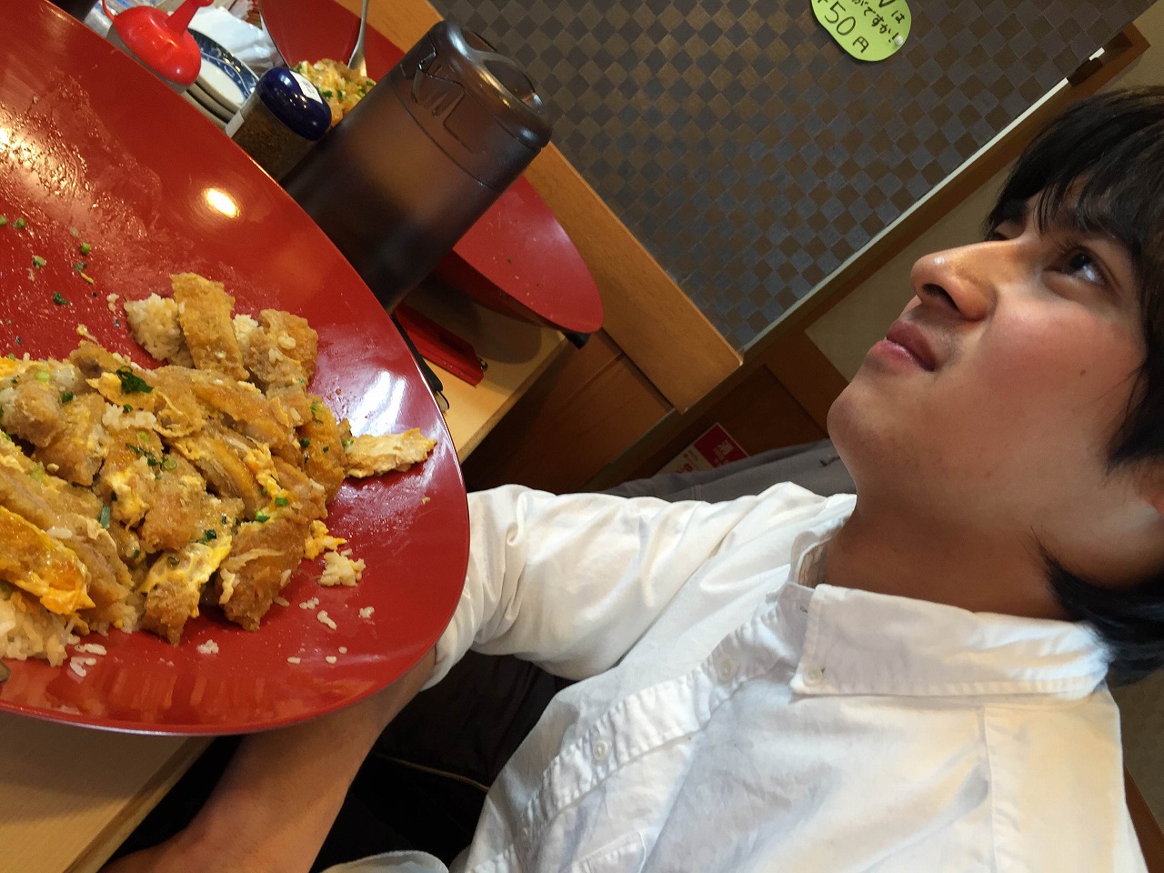 簡単に言えば、30分以内に5人前の大きさのカツ丼を完食できれば1万円もらえるってやつです