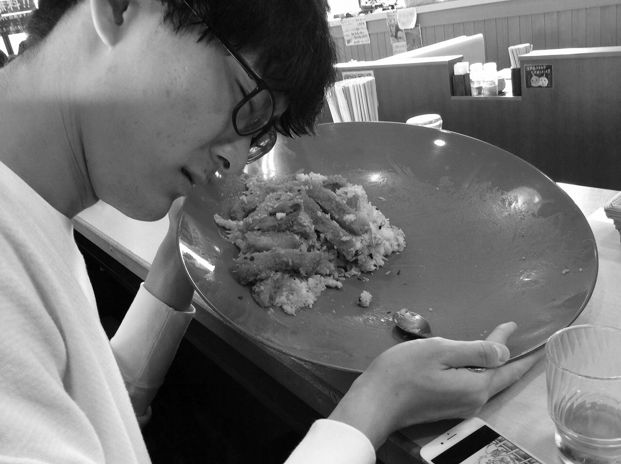 男子は最初にすごい勢いで食べて、20分経たずに胃の容量オーバーでギブ