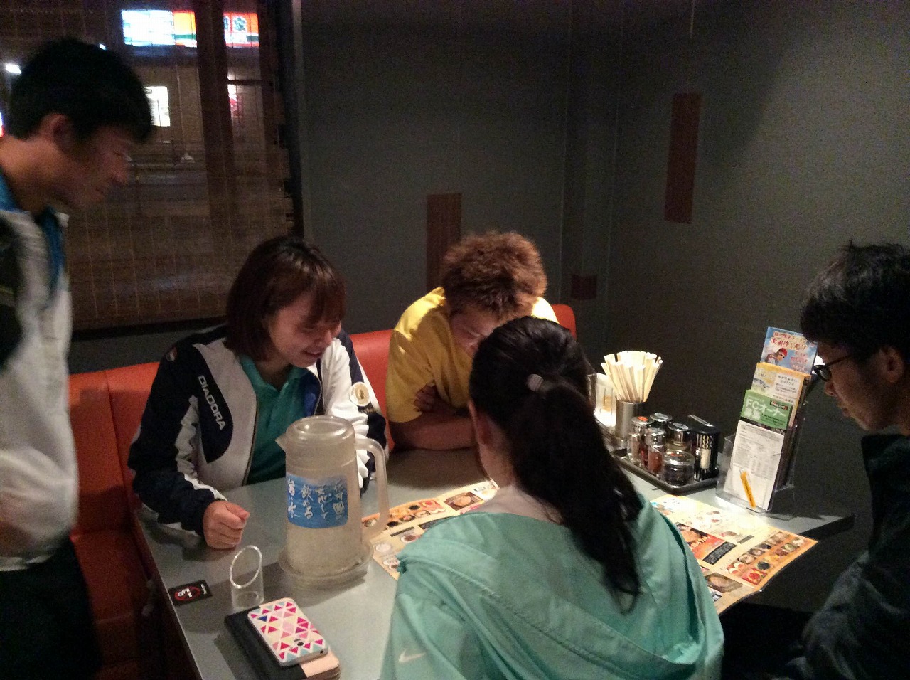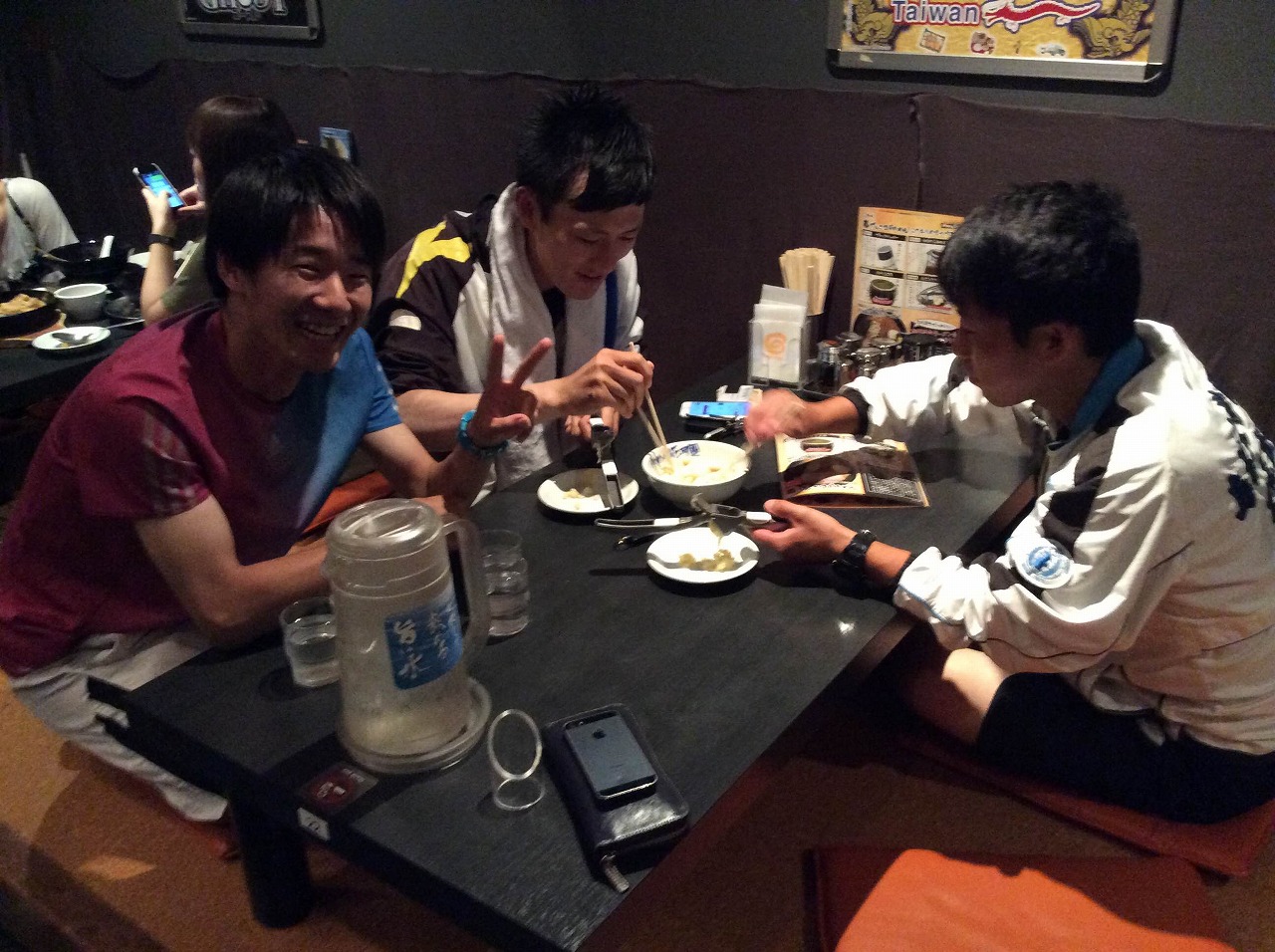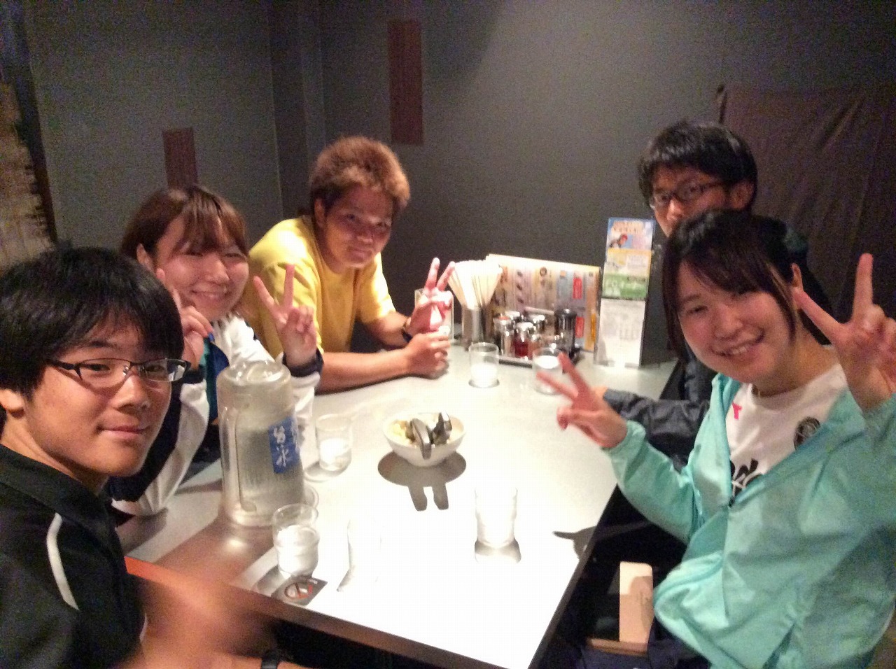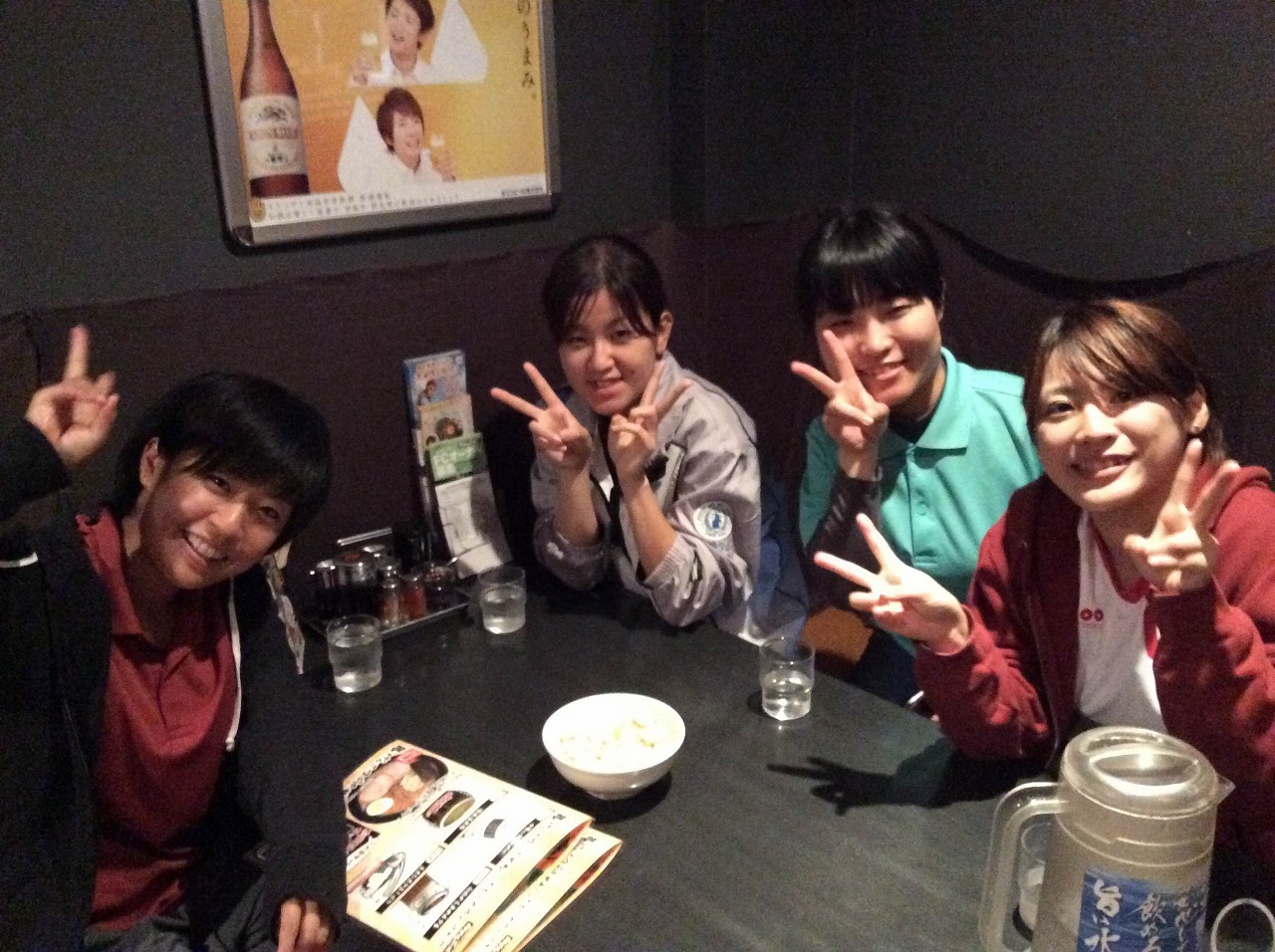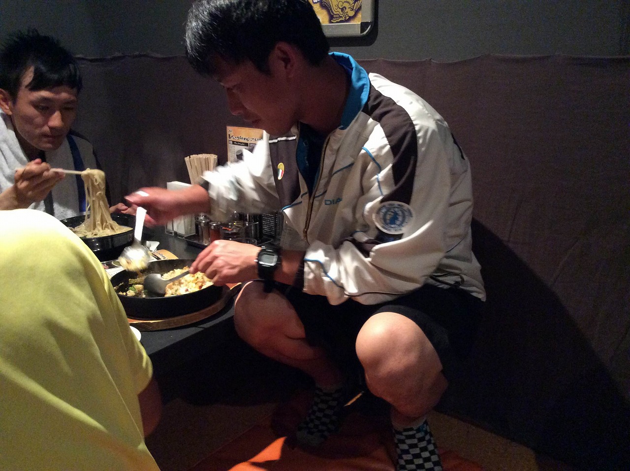 新人テーブルへ出陣体勢(行儀悪いと女子から批判)