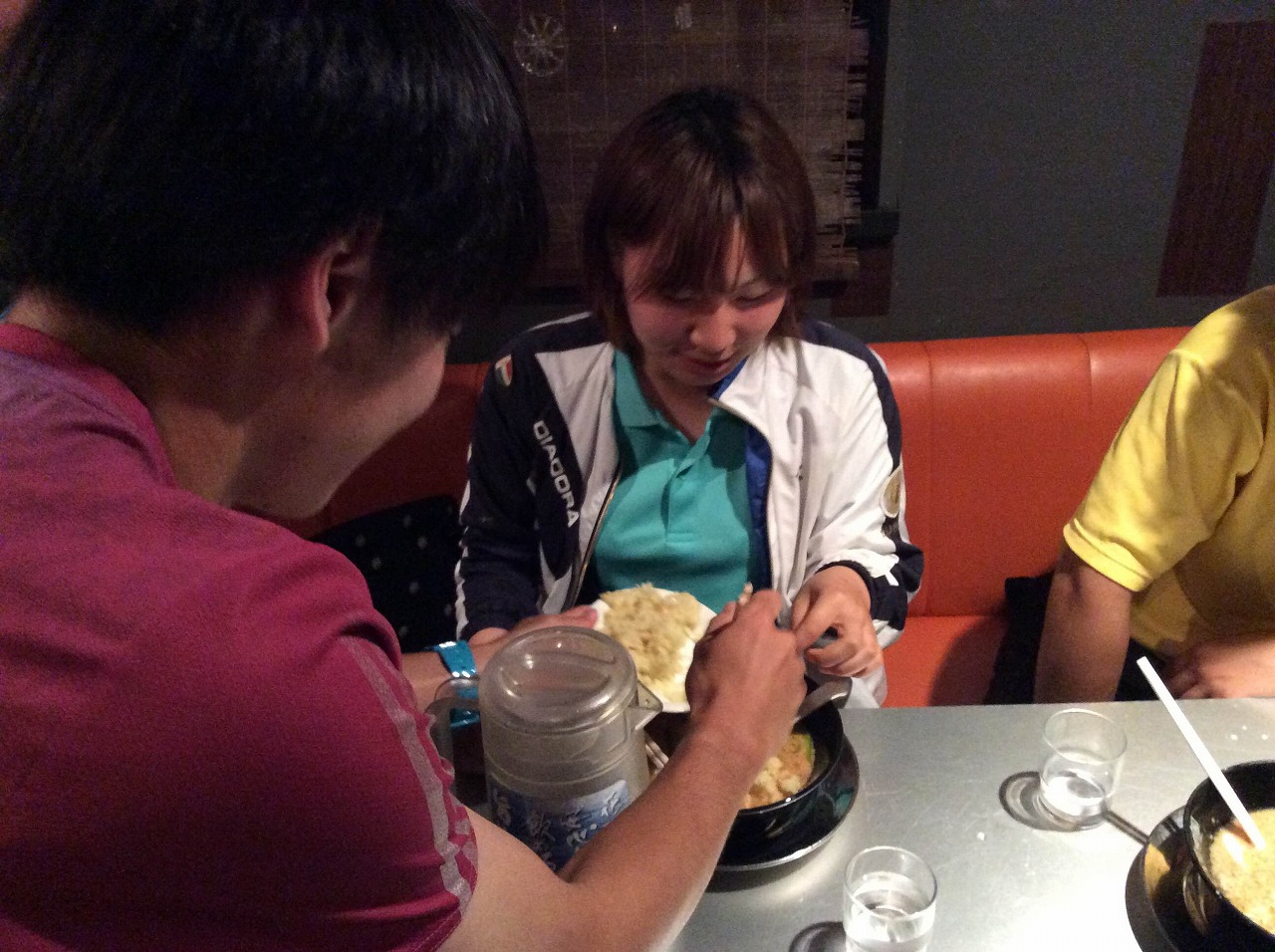しれっと追加を免れた元さんに食べさせる古田さんと、そんな2人を見守る目がすでに大御所感にあふれている角田