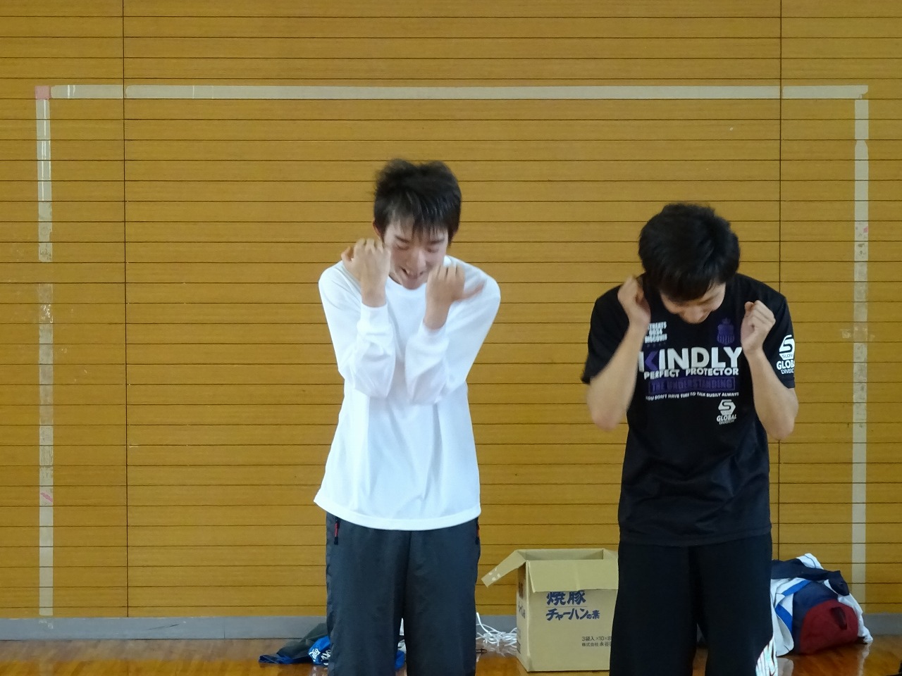 全力でタコのジェスチャーをするかとぱんさんと、恥じらいを捨てられない男子