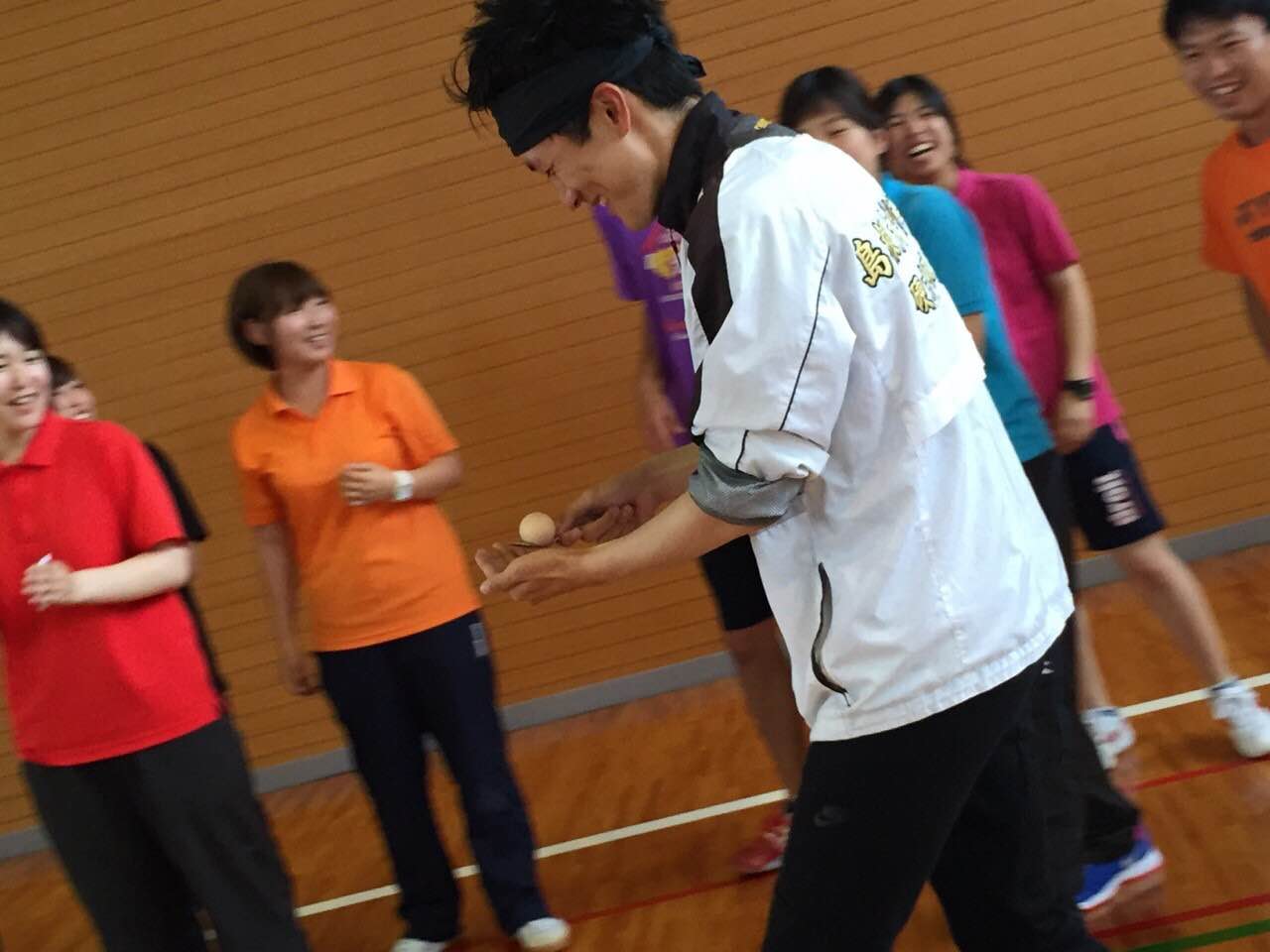 引退学年のアンカーは、スプーンで生卵(賞味期限切れ)を運びます