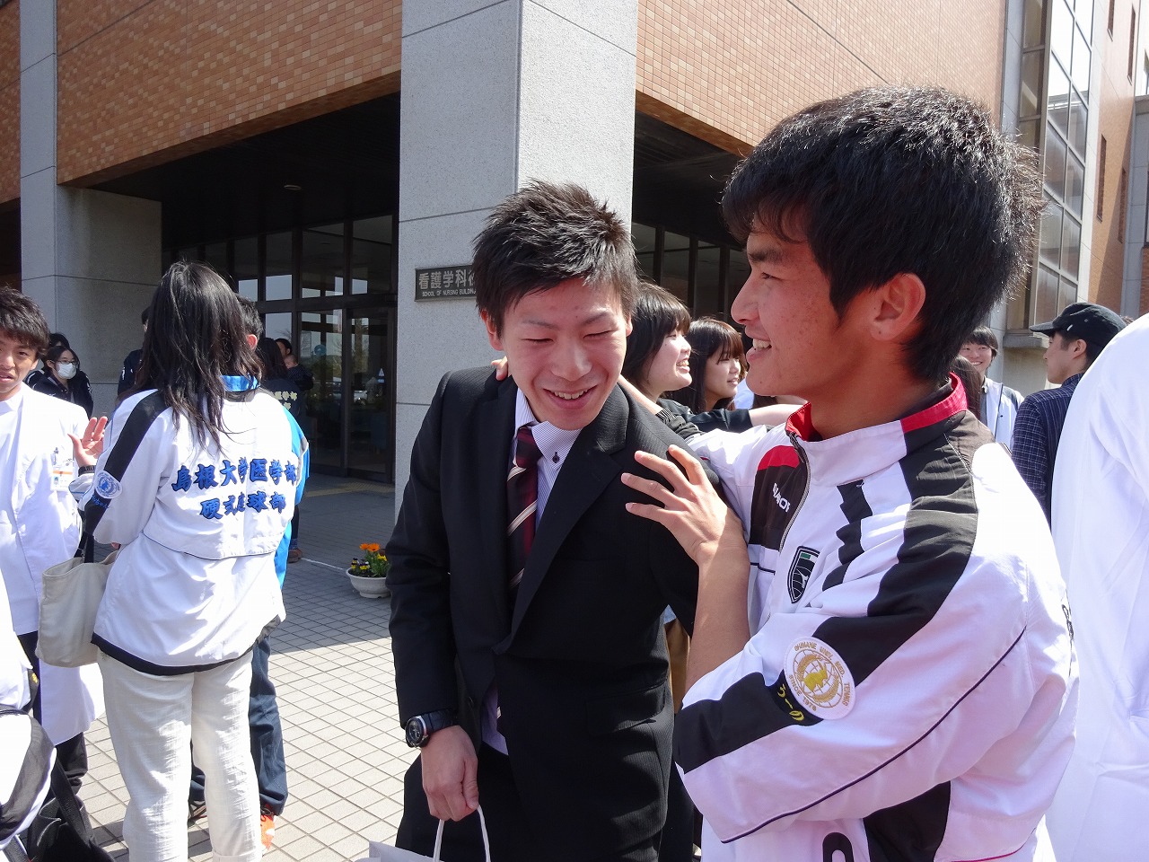 卒業生と同期の肩組みシリーズ