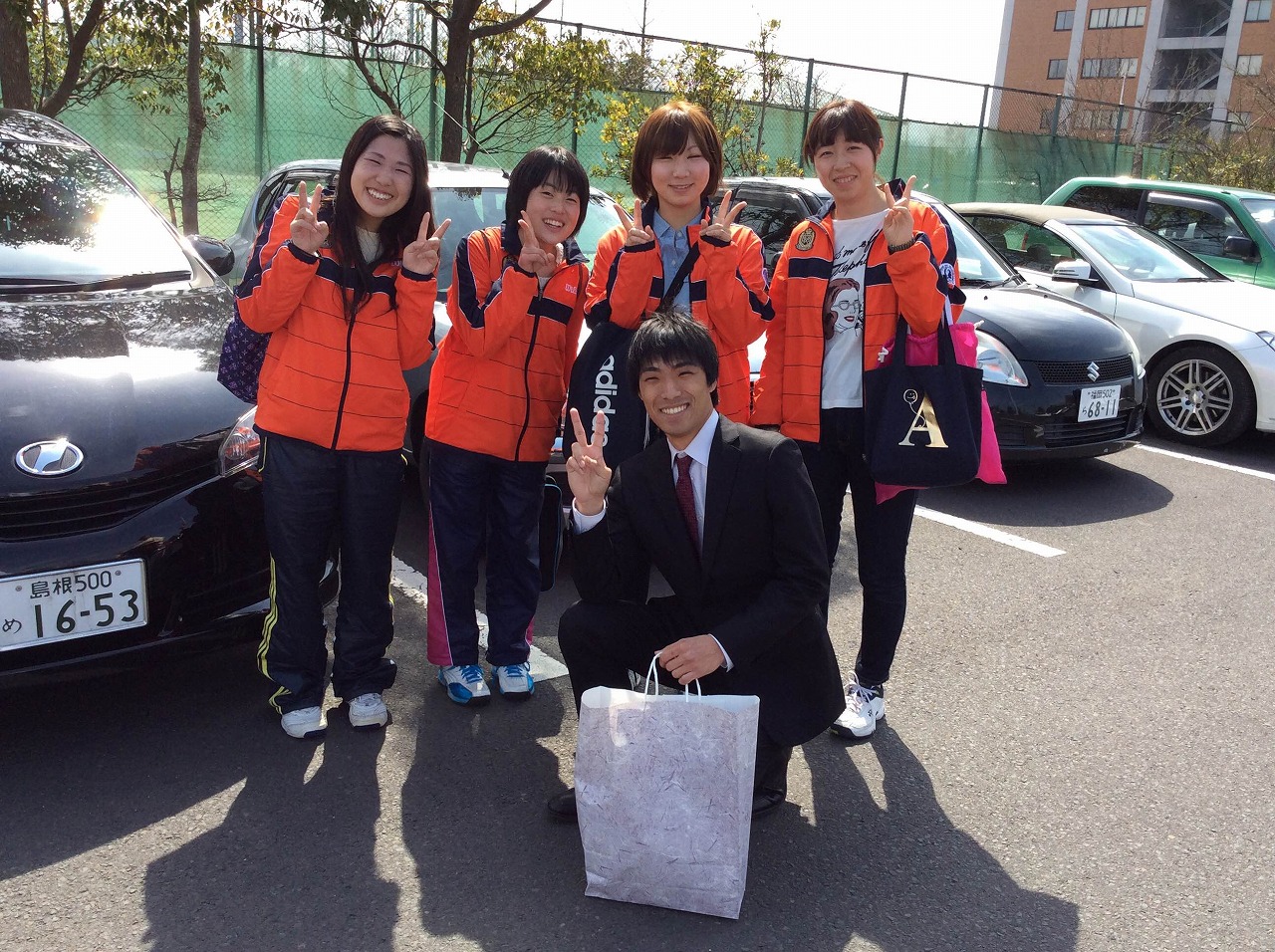 まずは、体育館から出てこられる卒業生さんを待ち構えます