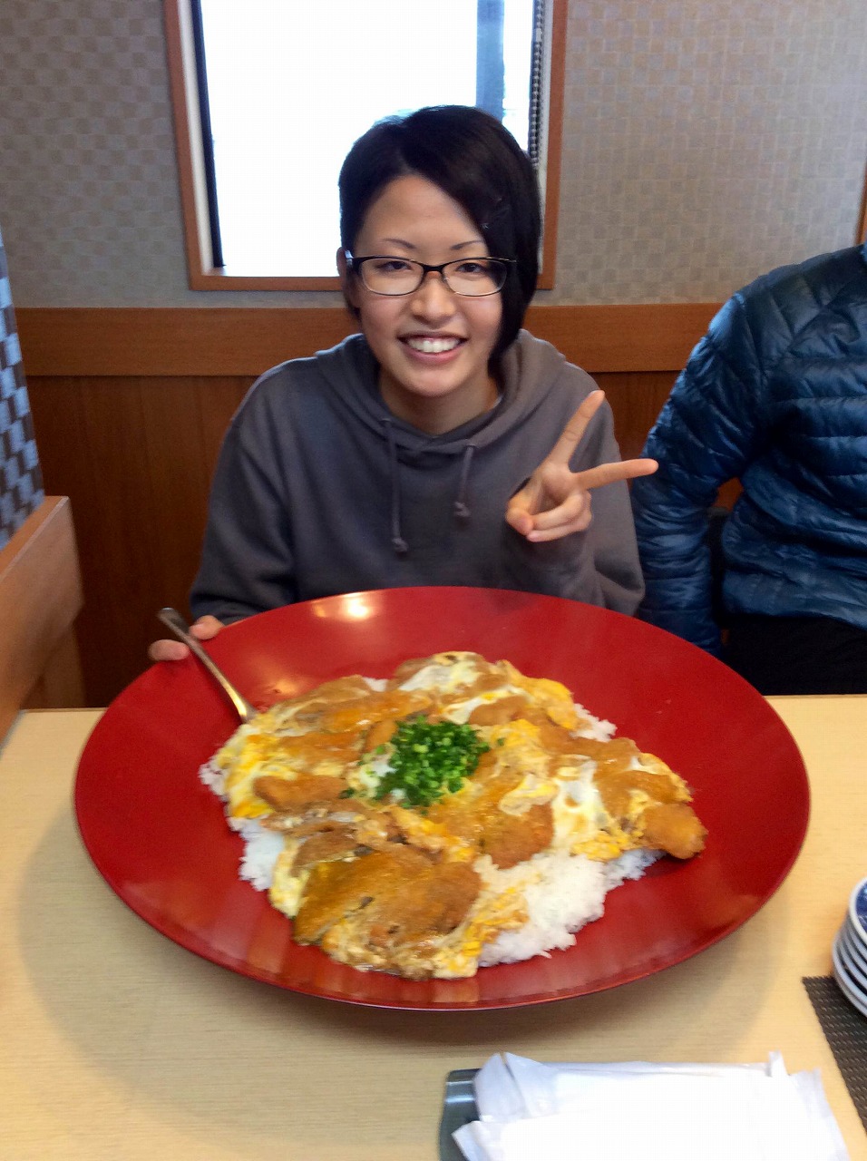 簡単に言えば、30分以内に5人前の大きさのカツ丼を完食できれば1万円もらえるってやつです